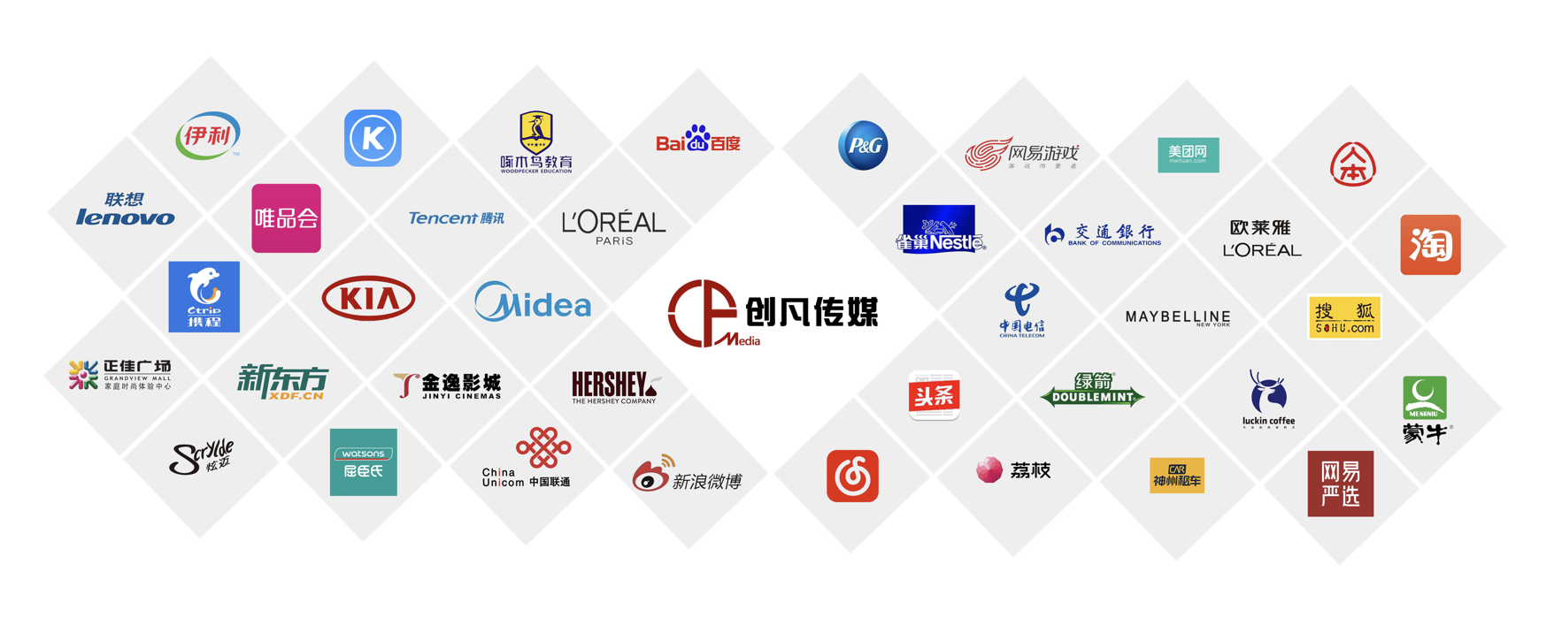 公司以“做品牌年輕化的好幫手”為使命,憑借敏銳的創(chuàng)意洞察、卓越的營銷策劃能力、豐富的活動經(jīng)驗和全方位的媒體資源,為企業(yè)提供高效、精準的一站式營銷推廣服務。已成為寶潔、騰訊、京東、中國聯(lián)通、字節(jié)跳動等世界500強品牌庫內供應商。
